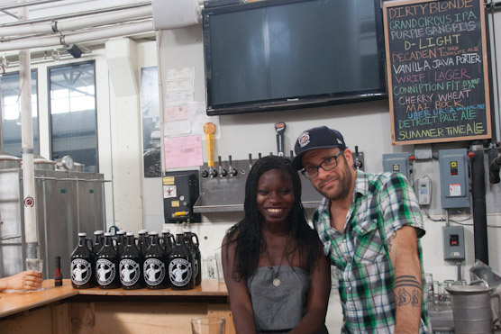 Walking into to Atwater you immediately realize they are in the business of brewing beers as opposed to entertaining. Workers were moving boxes, bottles and product as we were what seemed to not only be the brewing floor but also the warehouse.Once you walk past the desk and a few boxes and assembly line you get to the bar which doesn’t seat many people but there were three seats waiting for us. We had the pleasure of being served by Shawn who was quite easy on the eyes and had a great personality to match. Since I am not a beer connoisseur I always take recommendations from the bartender and he led me to the Vanilla Java Porter which I really enjoyed. I tasted Anke’s Dirty Blonde which I also enjoyed. I would say this place is definitely off the beaten path and worth a try. It isn’t fancy but it is very cool.