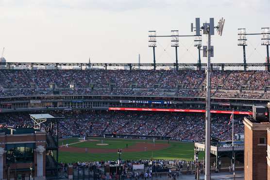Opening to much fanfare, the Detroit Opera House has opened their rooftop for drinking, enjoying hotdogs and hamburgers all the while watching the Tiger’s game and 360 views of the city. Friday’s opening nice was full of people, but not too crowded and left most of the visitor’s floored. Everyone kept proclaiming how nice it was. I will let the pictures do the talking, but be sure to check out this bar before the end of the season. They are open every Friday and Saturday as well as game days.