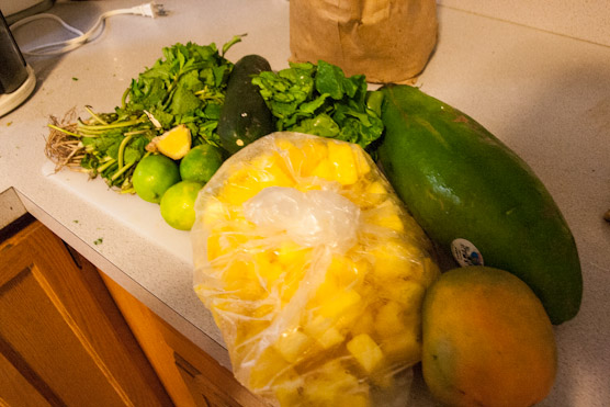 mint, cilantro, pineapple, mango, papaya, cucumber, lime, ginger, spinach |