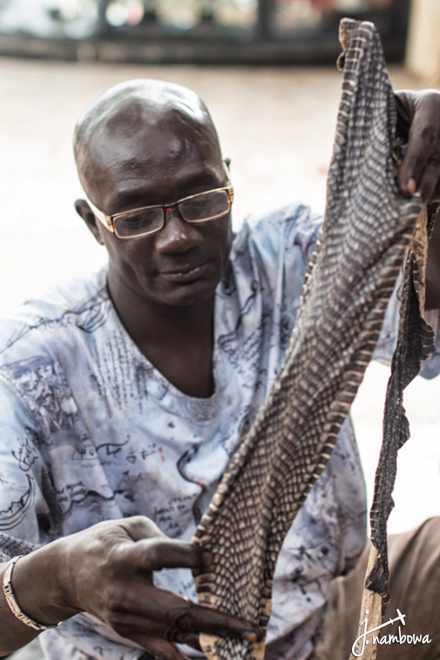 Babs and I were on our way out of the market when we passed this guy nailing snake skins to a board. My curiosity was piqued and we spent about 20 minutes with him as he told us the process of making goods from snakeskin and crocodile skin. He was very nice and eager to show his work. When I asked him his age he said 35, which was clearly a lie. We all laughed and laughed and laughed. I was too embarrass to guess his real age so I laughed through my many “Je ne sais pas” as he kept insisting I guess. It was good fun laughing with him in the market and not feeling like he wanted anything from me just because I was a foreigner. Of course he asked if I was married, but he was not pushy. His energy kept me smiling for the rest of the day.